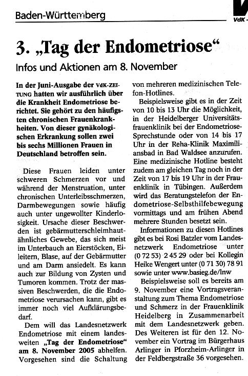 Rückblick auf den 2. "Tag der Endometriose" am 08.11.2004