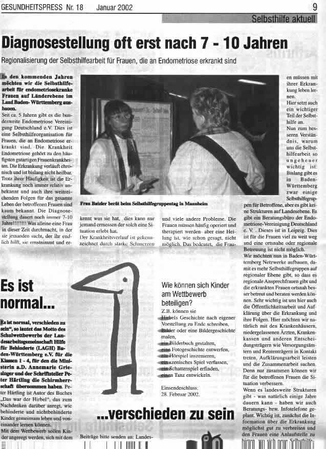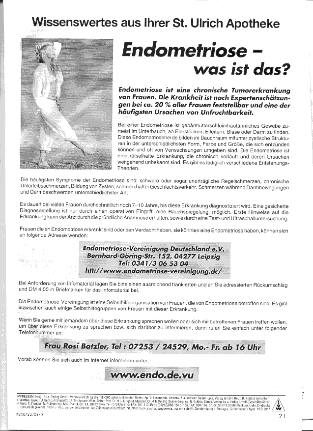 | 29.01.2001 | neuer Flyer für Teenies von der Endo-Vereinigung,